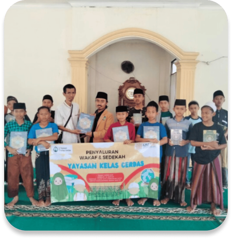 Membagikan mushaf Al-Qur’an kepada santri, majelis taklim, masjid, dan masyarakat. Tujuannya adalah mendukung kegiatan belajar Al-Qur’an serta memperluas keberkahan ilmu di berbagai penjuru.